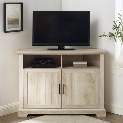 There's nothing more satisfying than finding a perfect match to fit in with your existing furniture. Ameriwood home white lamont mantel tv corner stand fireplace. By monarch specialties 7 240 97. Modern corner entertainment tv stand up to 42 oak space saving storage shelves. This option is simple yet functional and durable.